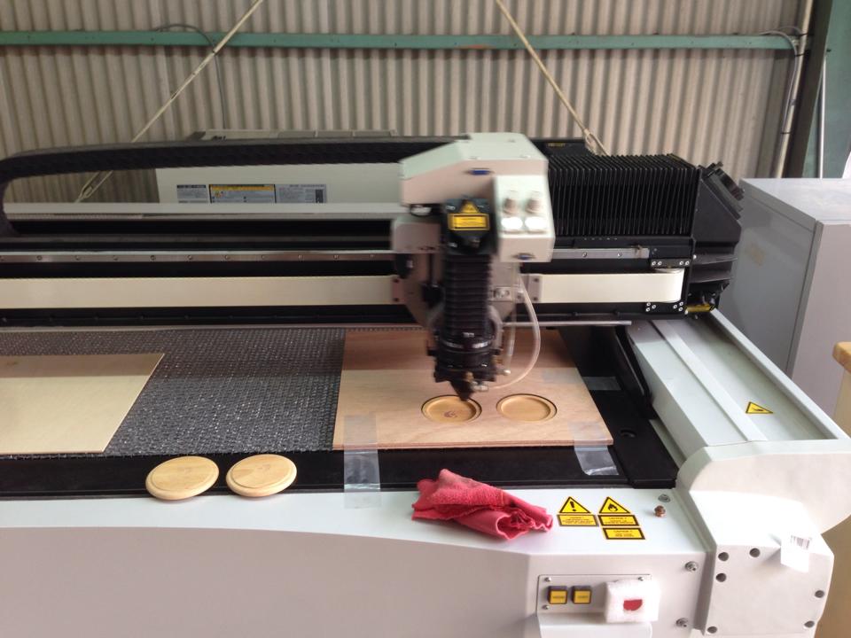 大型レーザー加工機で、レーザー径、細かな軟材のカットや彫刻を対応可能です。